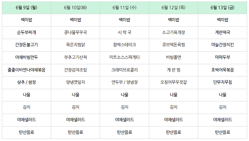 | 센텀시티 구내식당 식단표 2025년 [6월 2일 - 6월 6일] 주간 (1) | 2025.06.02 |