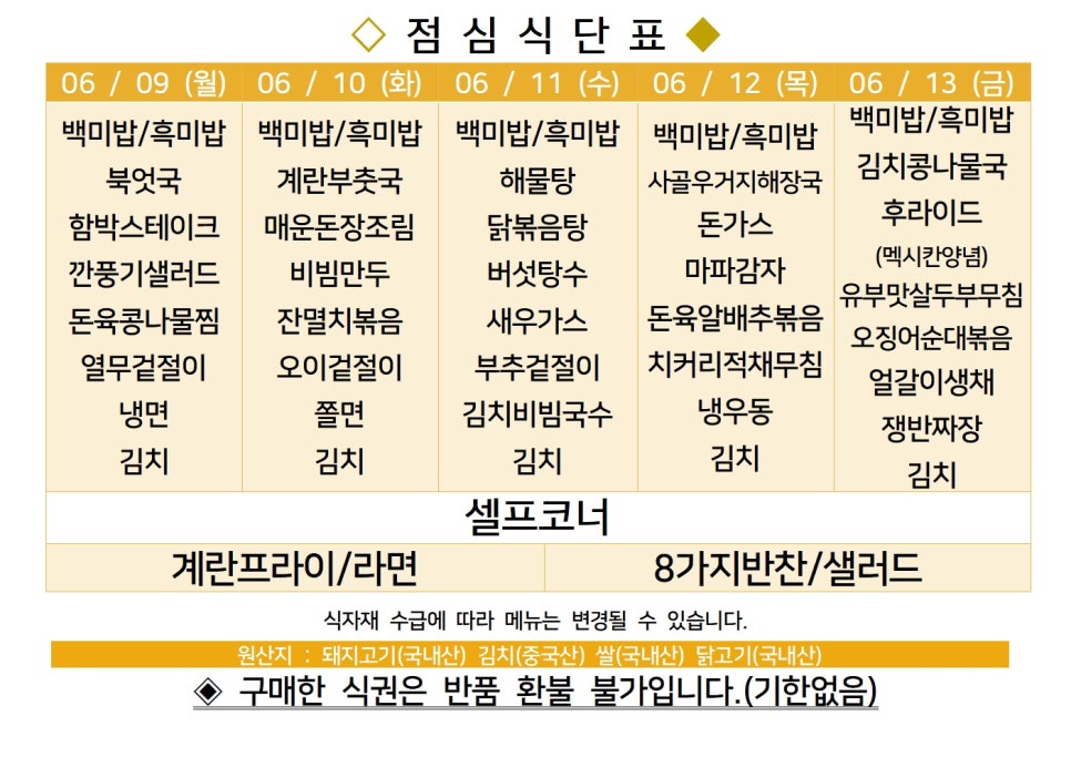 | 센텀시티 구내식당 식단표 2025년 [6월 16일 - 6월 20일] 주간 (0) | 2025.06.16 |