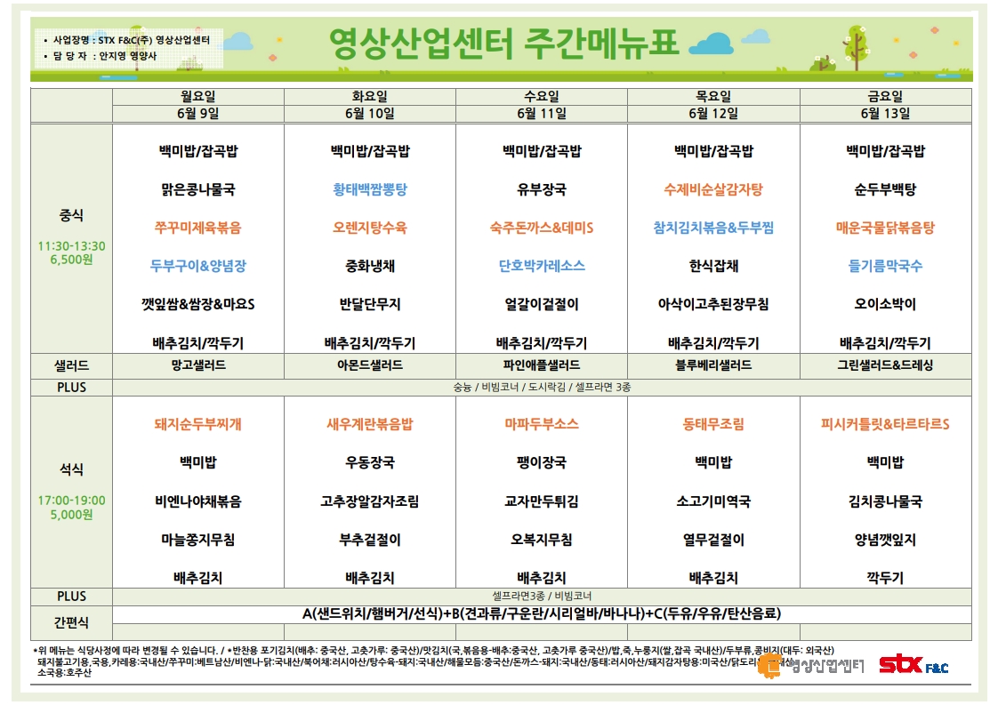 | 센텀시티 구내식당 식단표 2025년 [6월 2일 - 6월 6일] 주간 (1) | 2025.06.02 |
