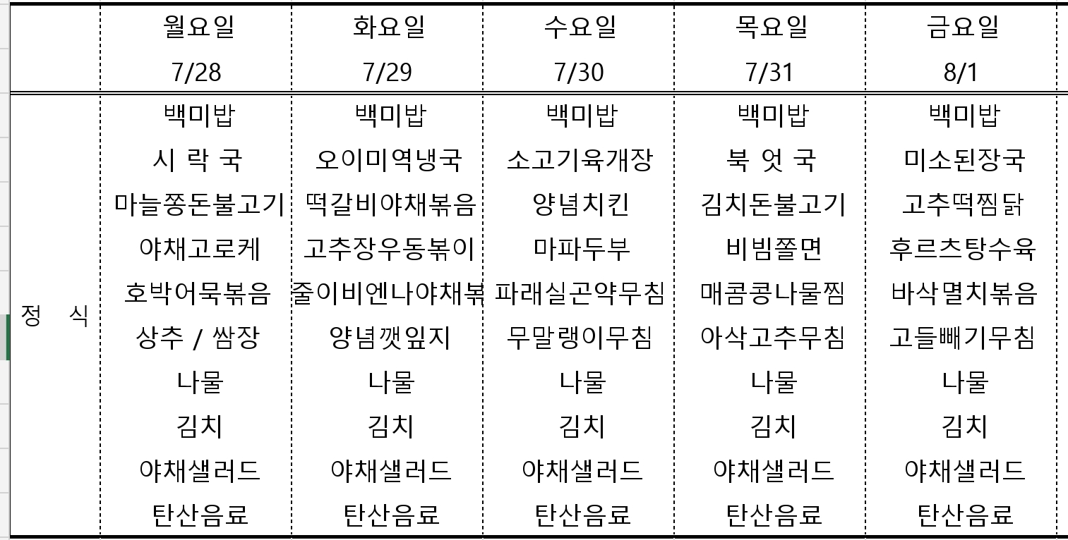 | 센텀시티 구내식당 식단표 2025년 [8월 4일 - 8월 8일] 주간 (1) | 2025.08.04 |