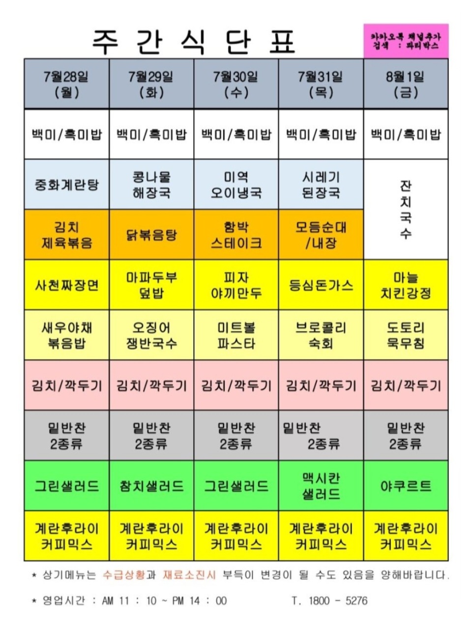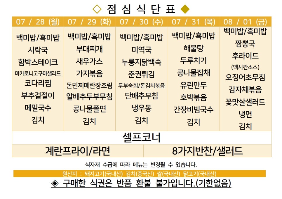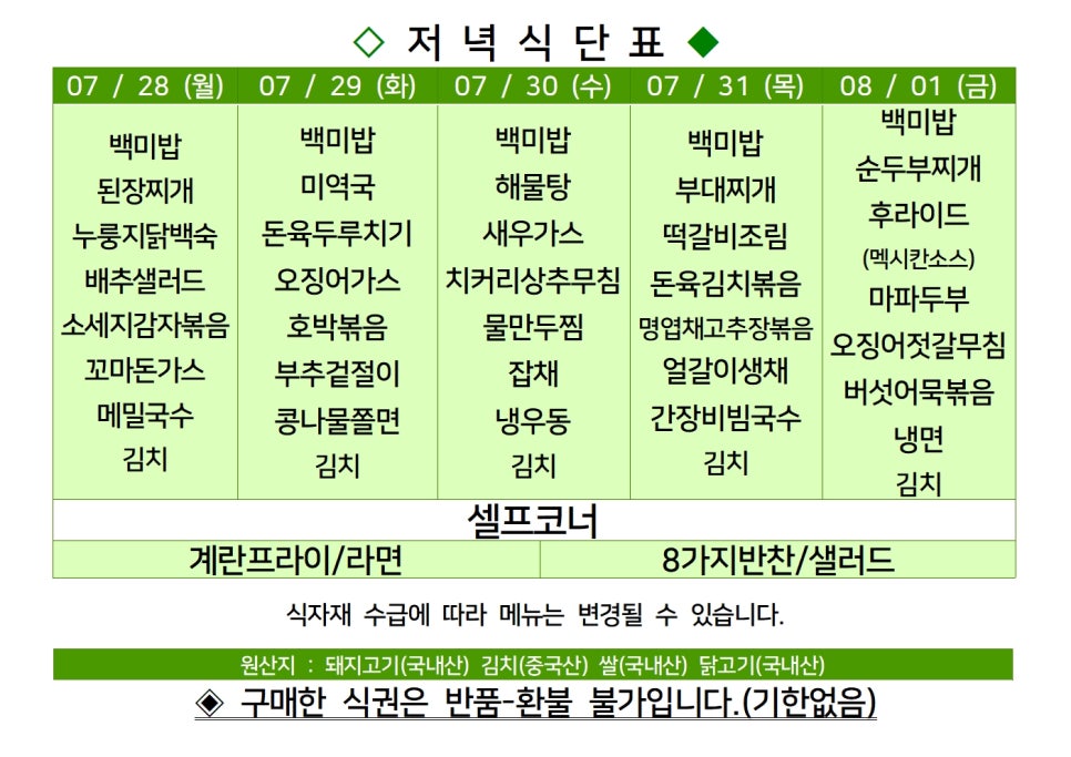 | 센텀시티 구내식당 식단표 2025년 [7월 21일 - 7월 25일] 주간 (1) | 2025.07.21 |