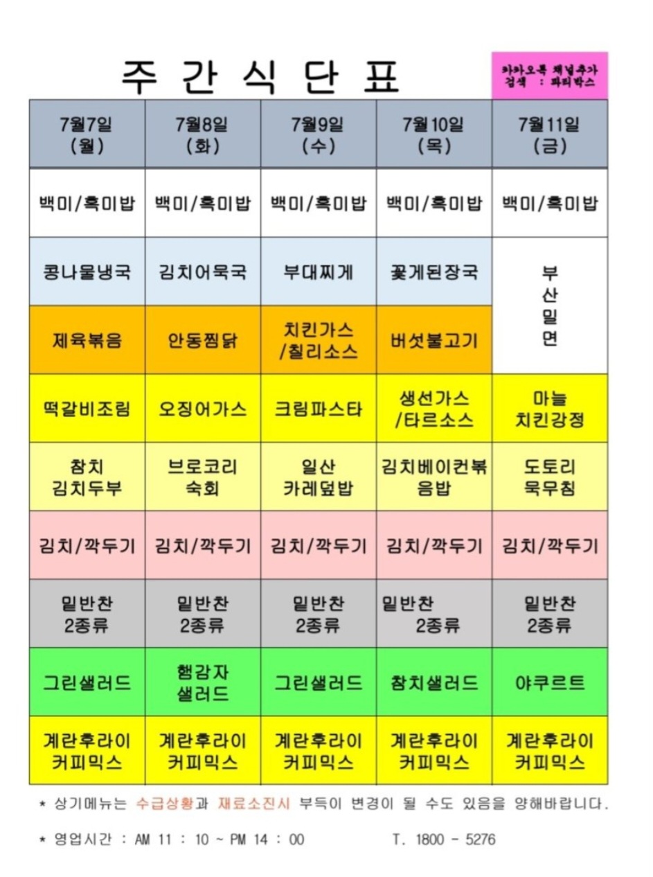 | 센텀시티 구내식당 식단표 2025년 [6월 30일 - 7월 4일] 주간 (2) | 2025.06.30 |