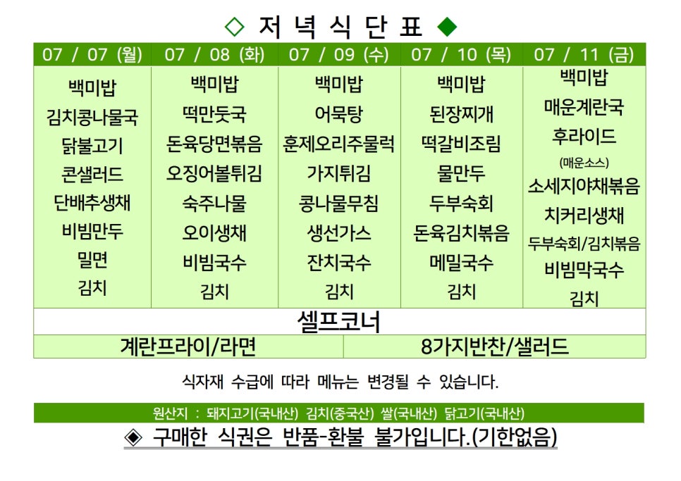 | 센텀시티 구내식당 식단표 2025년 [7월 21일 - 7월 25일] 주간 (1) | 2025.07.21 |