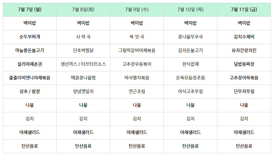 | 센텀시티 구내식당 식단표 2025년 [7월 14일 - 7월 18일] 주간 (0) | 2025.07.14 |