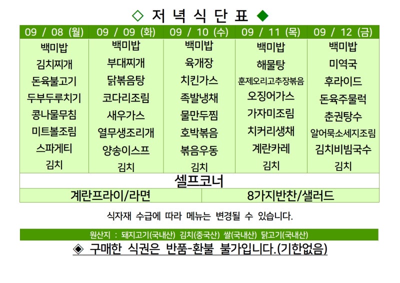 | 센텀시티 구내식당 식단표 2025년 [9월 1일 - 9월 5일] 주간 (1) | 2025.09.01 |