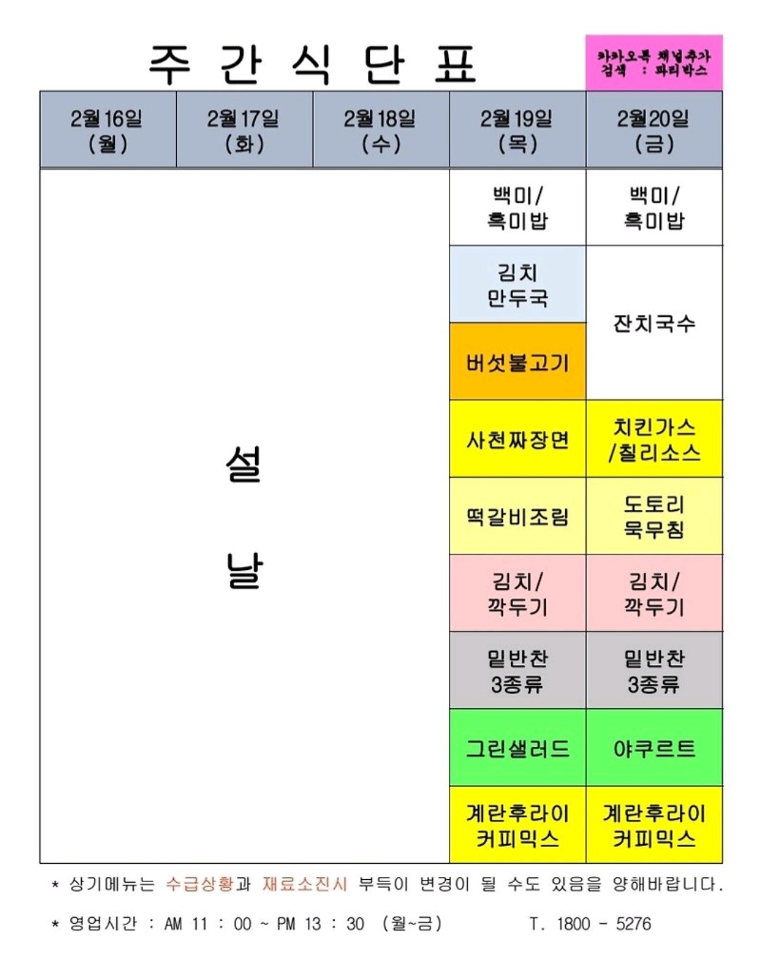 | 센텀시티 구내식당 식단표 2026년 [3월 3일 - 3월 6일] 주간 (0) | 2026.03.03 |