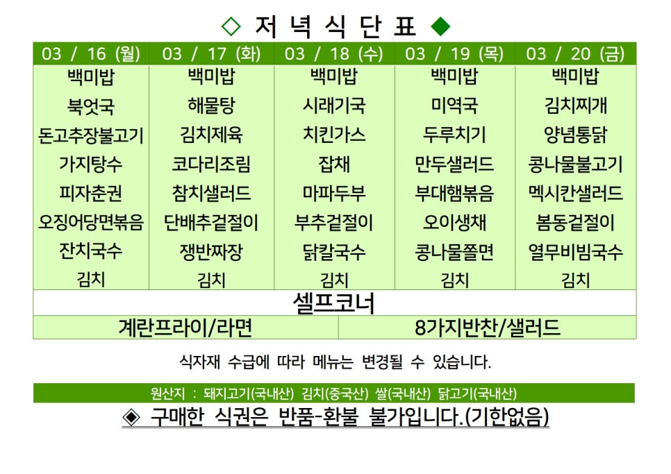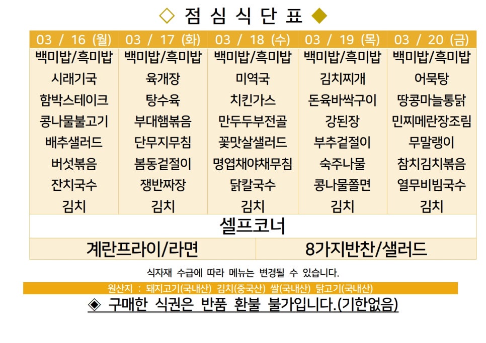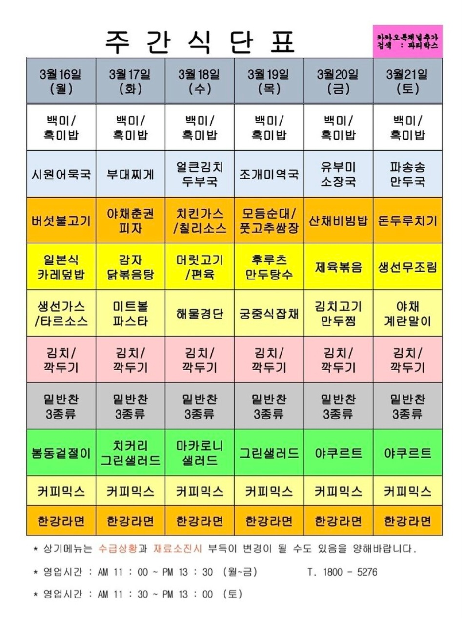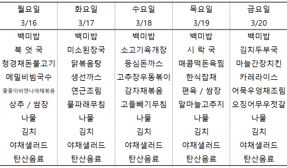 | 센텀시티 구내식당 식단표 2026년 [3월 3일 - 3월 6일] 주간 (0) | 2026.03.03 |
