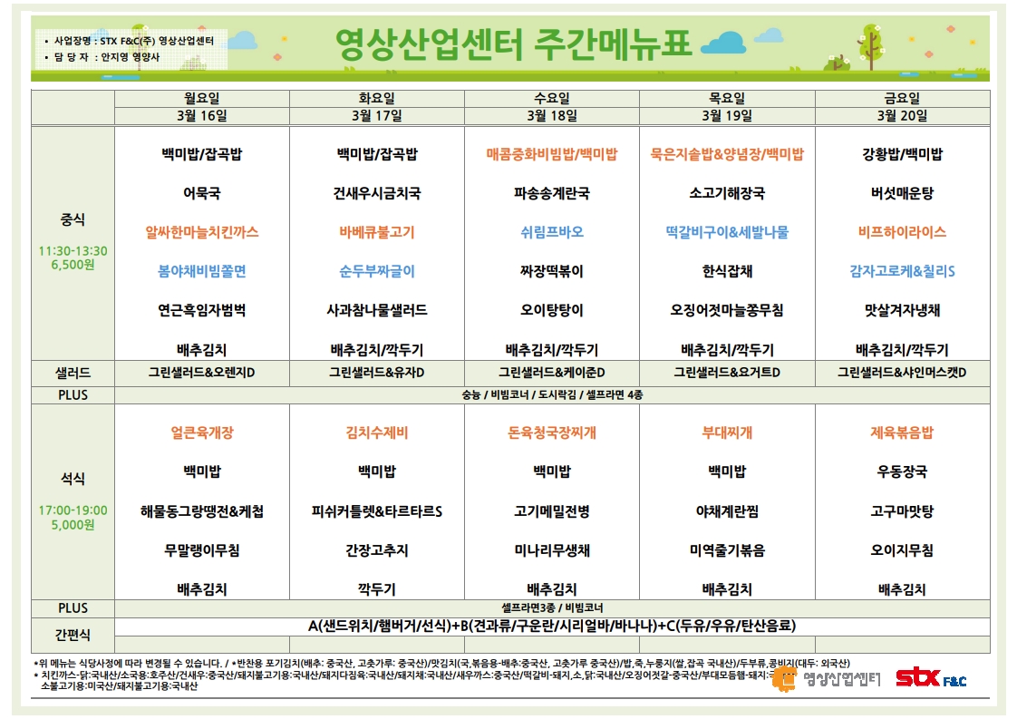 | 센텀시티 구내식당 식단표 2026년 [3월 9일 - 3월 13일] 주간 (0) | 2026.03.09 |