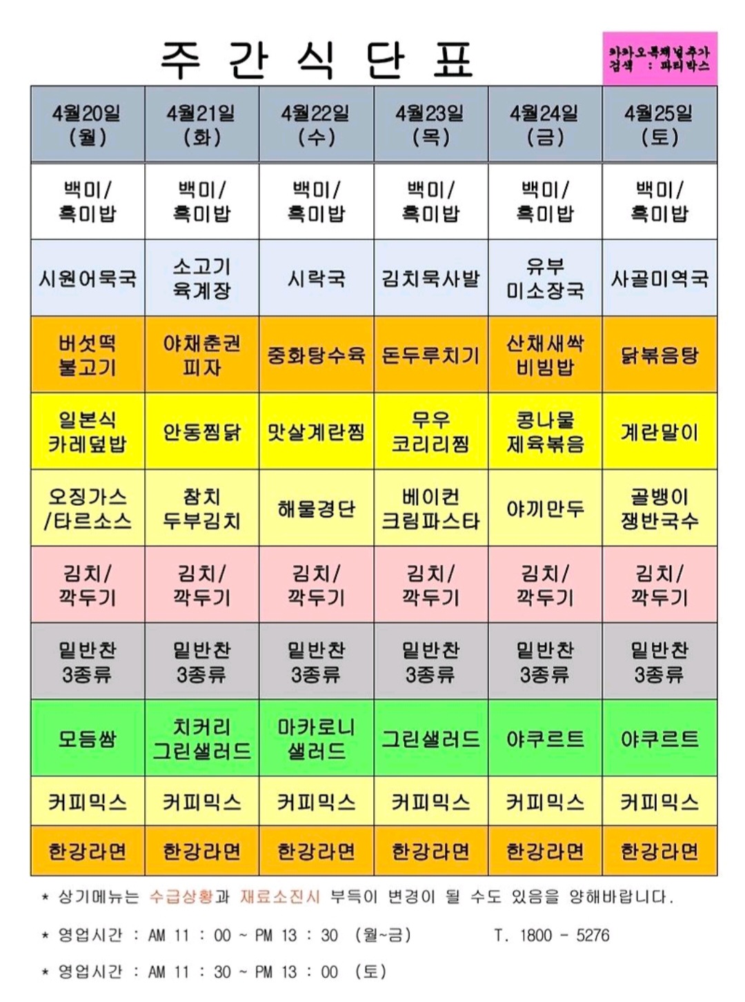 | 센텀시티 구내식당 식단표 2026년 [4월 13일 - 4월 17일] 주간 (0) | 2026.04.13 |