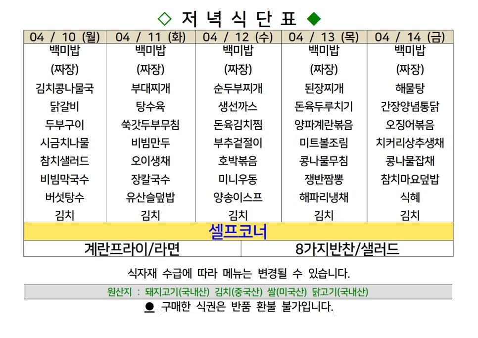 식당 입구 자동판매기에서 식권을 구입하세요~