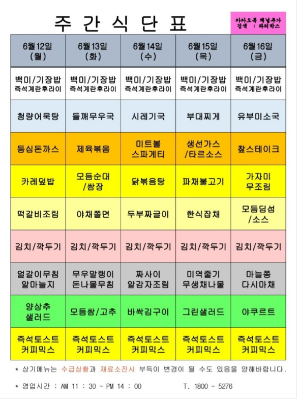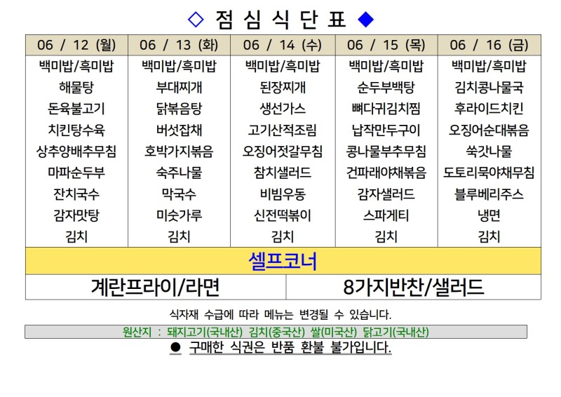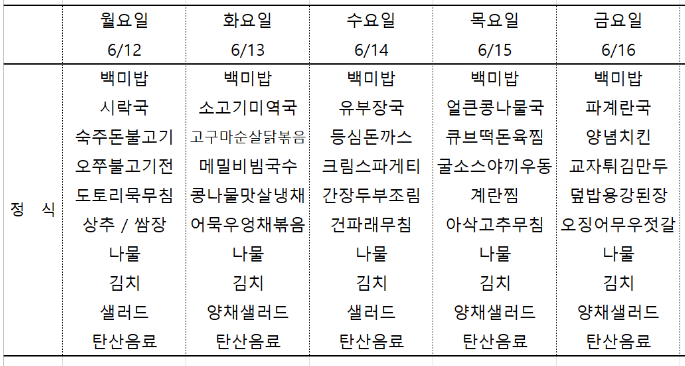 | 센텀시티 구내식당 식단표 [6월 19일 - 6월 23일] 주간 (0) | 2023.06.19 |