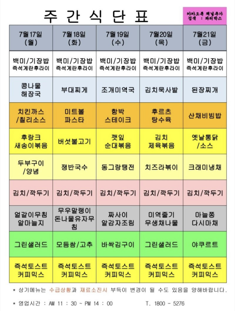 | 센텀시티 구내식당 식단표 [7월 24일 - 7월 28일] 주간 (0) | 2023.07.24 |