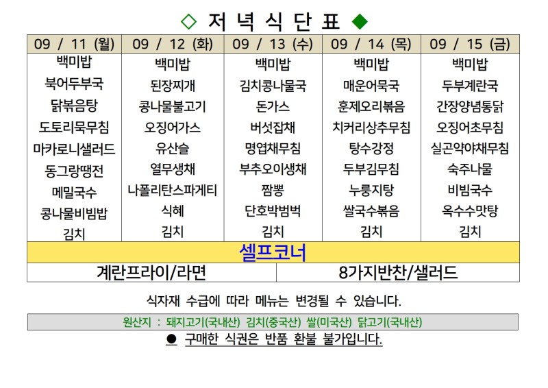 | 센텀시티 구내식당 식단표 [9월25일 - 9월 29일] 주간 (0) | 2023.09.25 |