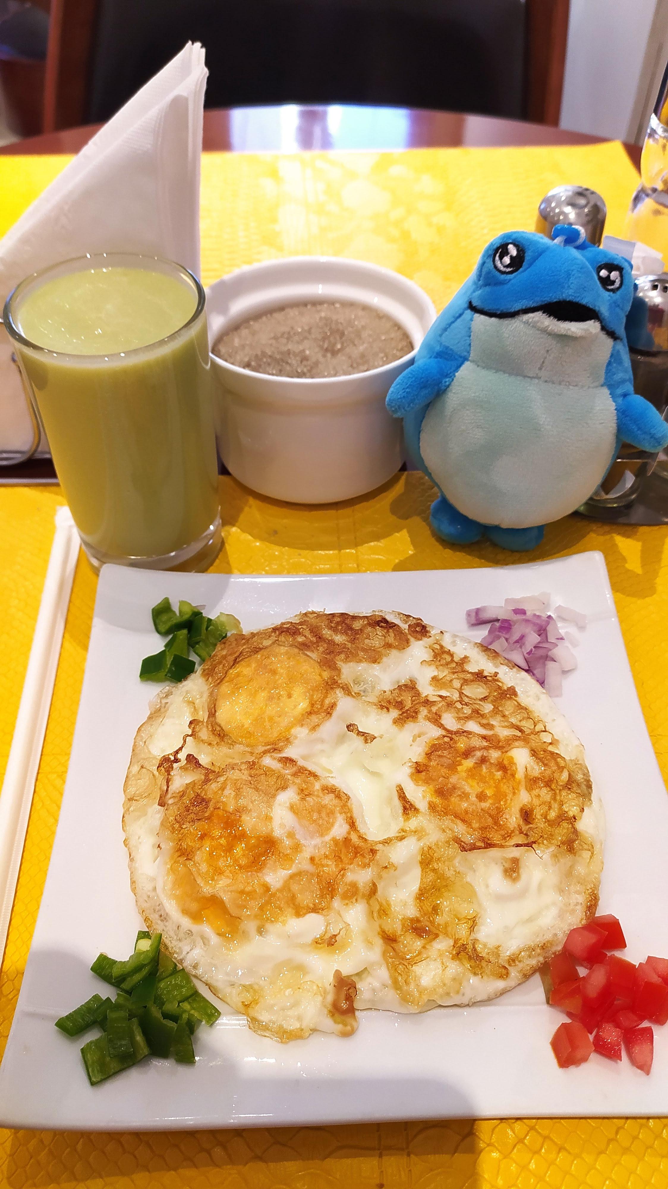 대충.. 되는 메뉴는 오믈렛 스크램블 달걀후라이 볶음밥 정도. 직원이 혼자 뭐라뭐라 하더니 예쁜 달걀후라이를 만들어왔다. 계란 3개와 약간의 채소.
