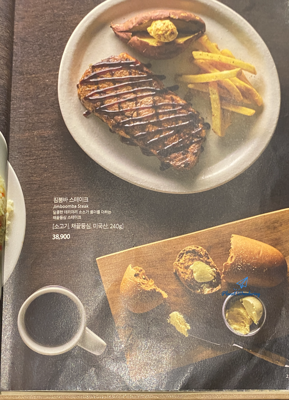 블랙라벨 커플세트의 스테이크는 퀸즈랜드 립아이와 달링 포인트 스트립 중에서 선택합니다. 퀸즈랜드 립아이는 꽃등심 부위로 기름기가 섞여있어 고소한 맛이 강한 반면, 약간 질긴 느낌이나 기름진 느낌이 들 수도 있죠. 한편 달링 포인트 스트립은 채끝등심 부위로 꽃등심보다는 기름기가 적어 담백한 맛과 함께 식감이 좋은 반면 조금 퍽퍽하다는 느낌이 들 수 있습니다. 뭘 먹을까,, 고민하다 퀸즈랜드 립아이를 선택했습니다.