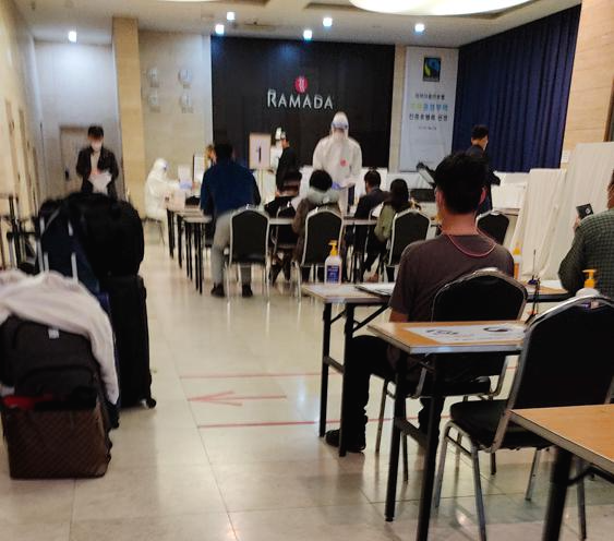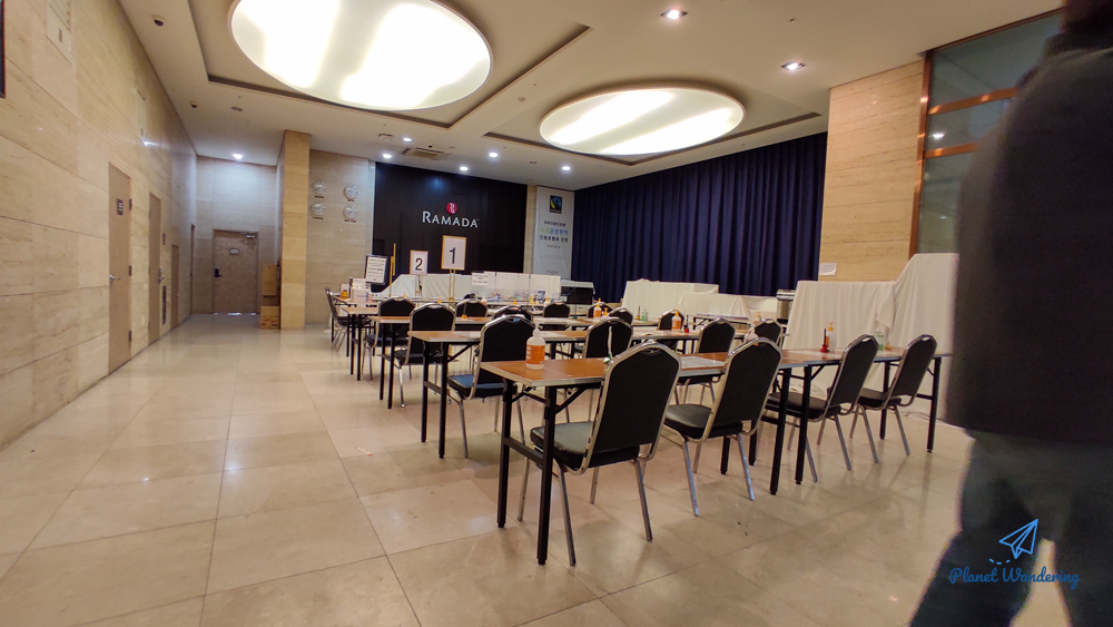 호텔 로비는 이런 모습입니다. 대기업 연수원의 교육장 같은 분위기로 변한 호텔 로비에서는 투숙하는 해외입국자들을 대상으로 서류 작성, 간단한 교육 등을 진행합니다. 외국인 입국자들도 몇몇 함께 격리를 하게 되었는데 안내하시는 분의 유창한 영어에 깜짝 놀랄 정도였죠. 추측하건데, 호텔 직원분들도 호텔의 격리시설 사용과 함께 방역요원으로 변신을 한 듯한 분위기였습니다.