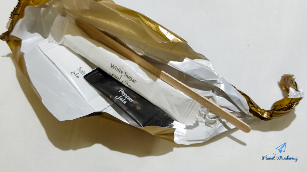 혹시나 하는 마음에 기내식에 따라 나온 후추와 소금, 커피와 함께 나온 설탕, 스틱을 함께 챙겨왔습니다. 당장은 스틱 밖에 쓸 일이 없지만 특히 소금과 후추는 꼬박꼬박 모아둡니다.