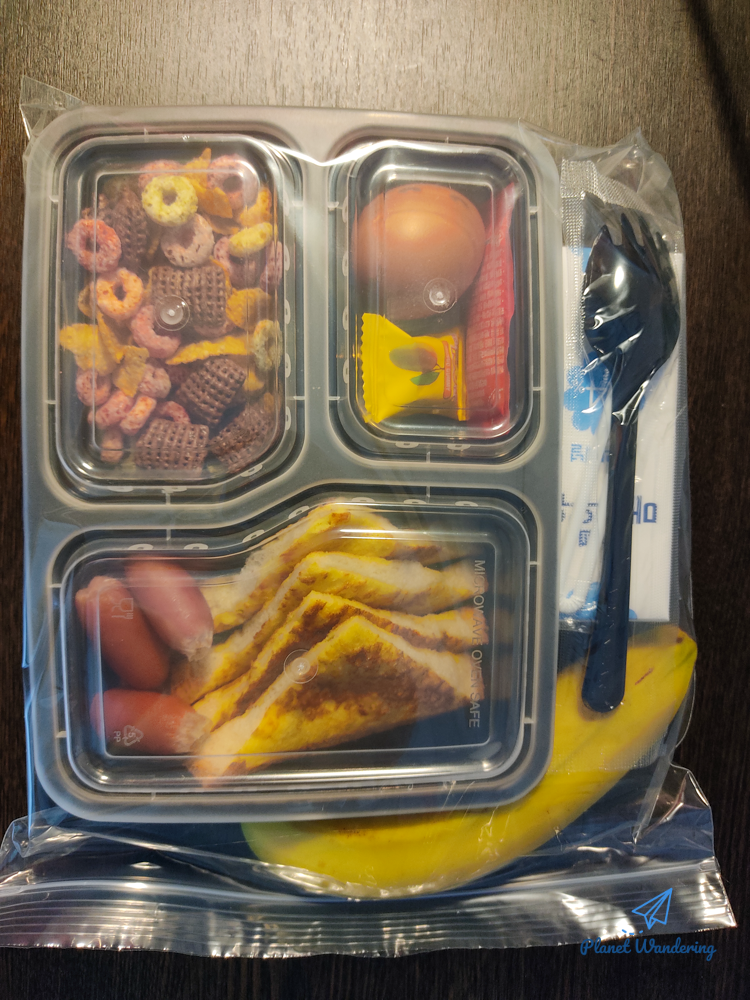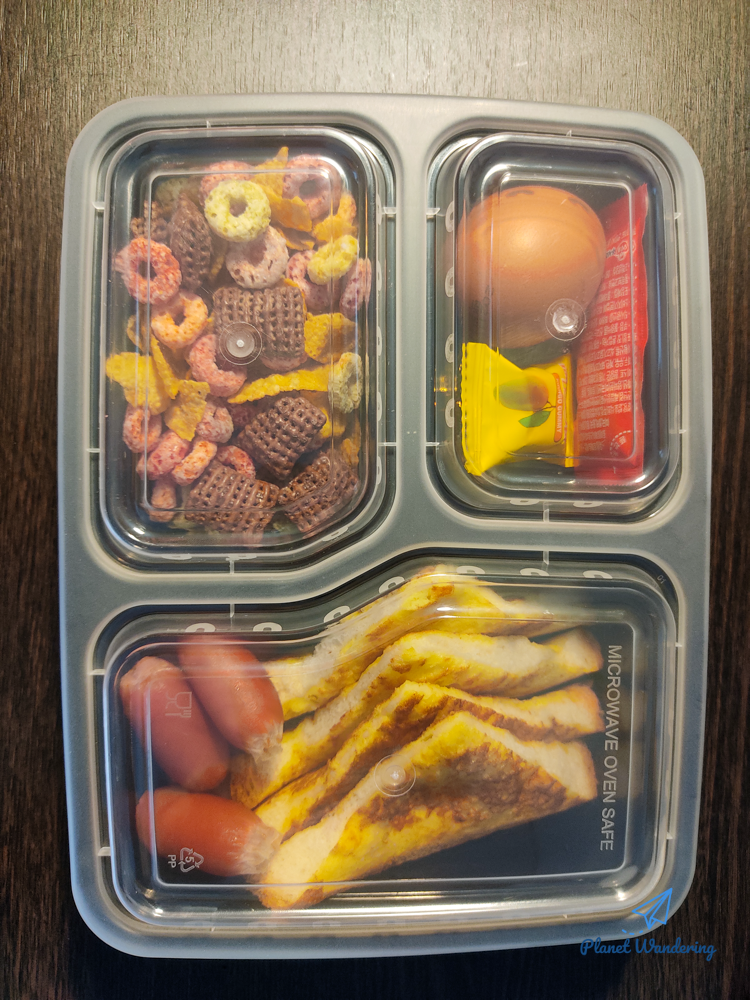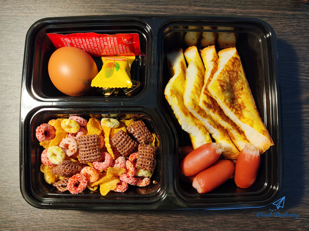 어젯밤에 남겨둔 김치가 아까워지는 대목입니다만, 예쁘게 잘 포장된 도시락이 왔네요. 시리얼은 우유에 타 먹으라는 것이고, 달걀에 사탕도 있습니다. 지나친 욕심인지 모르지만 토스트에 달콤한 시럽이 따라오지 않은 건 아쉬습니다.