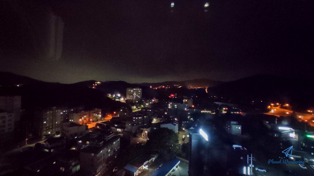 바깥 풍경은 괜찮습니다. 멀리 에버렌드 대관람차 불빛도 보이고,, 관람객이 있어서 불을 켠 건지, 불 끄면 이미지가 안 좋을까 봐 켜 둔 건지,,