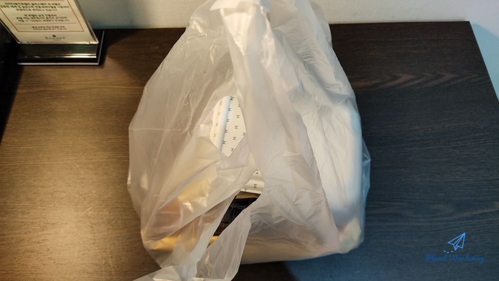 작년 11월 격리를 했던 부산의 커넥트부산호텔과 크게 다르지 않은 분위기입니다. 하나 더 배려로 느껴졌던 것은 문 앞으로 배달되는 도시락을 올려놓는 나무 선반이 있었다는 점입니다. 물론 비닐봉지에 포장되어 오지만 바닥에 놓지 않고 나무판 위에 올려놓는 작은 정성이 고맙게 느껴졌습니다.