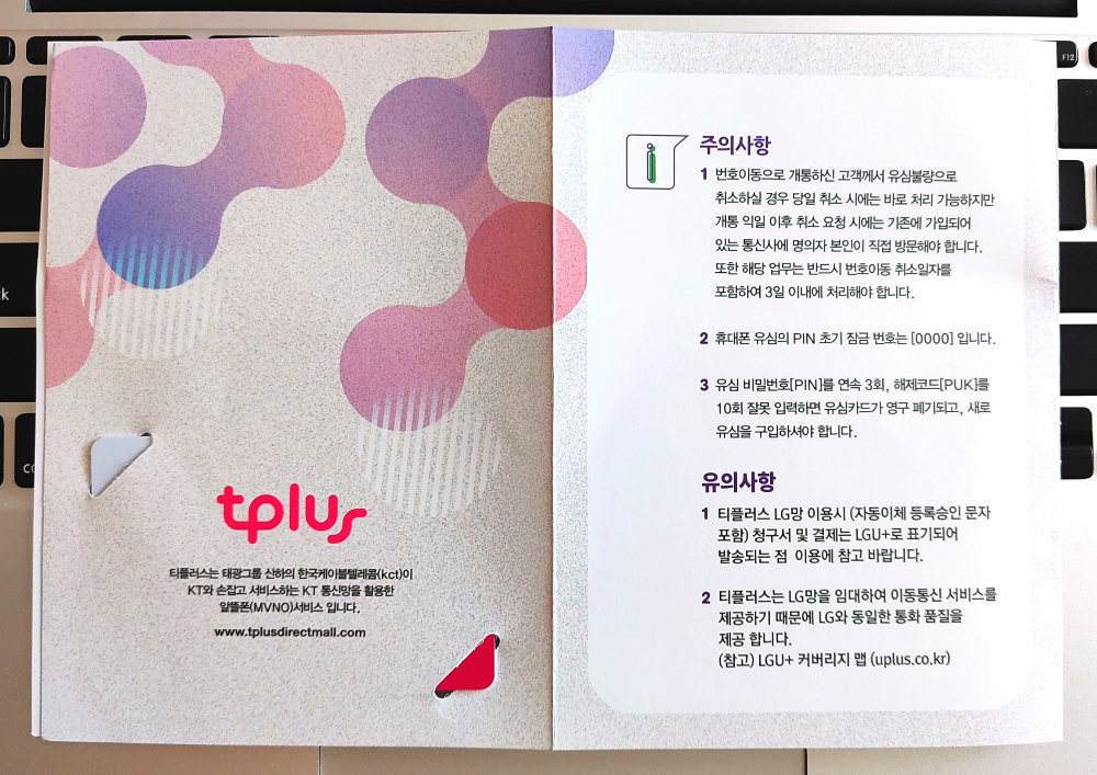 티플러스 유심카드는 인터넷 주문, 택배 수령이 편리합니다.