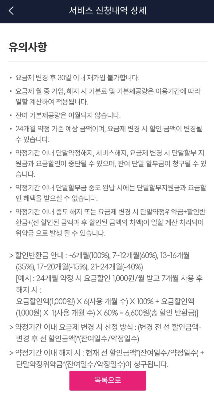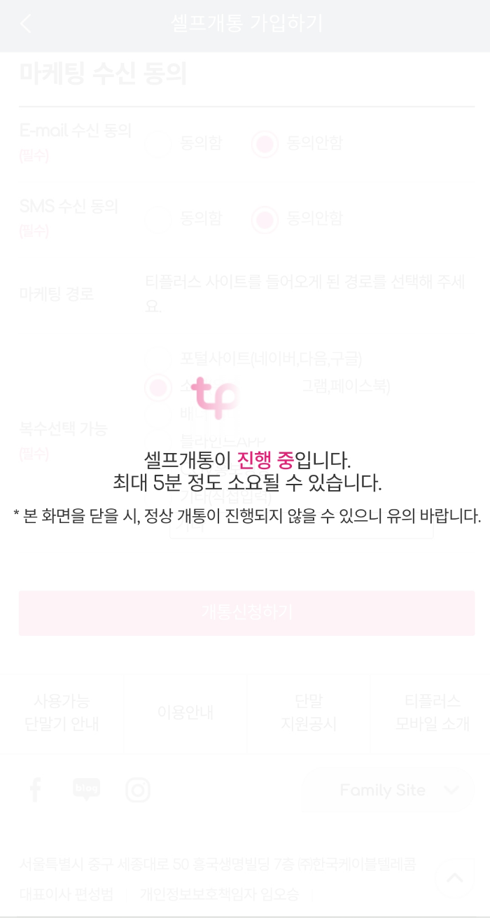 요금납부 정보와 마케팅 수신 동의/동의안함 을 선택하면 절차 완료