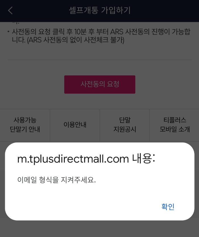 입력을 완료한 후에는 [사전동의 요청]이라는 절차를 진행해야 합니다. 기존 가입된 통신사로 '지금 너네 통신사를 떠나 티플러스로 번호이동을 할 거다'라는 정보가 전달되고 기존 통신사에서 번호이동을 동의하는 절차입니다. 전화로 상담원에게 이별을 알리는 통화를 하지 않아도 되니까 아주 편리해졌습니다.