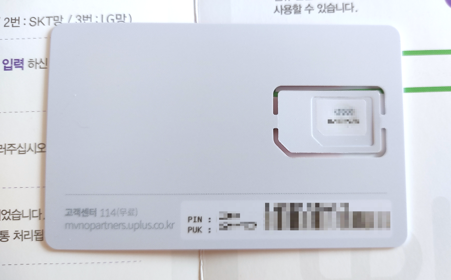 유심카드 안내문 안에는 유심칩과 여러 설명들이 적혀있지만 핸드폰 상에서 홈페이지를 열어 그대로 따라 하면 안내문의 내용 없이도 개통이 가능합니다.
