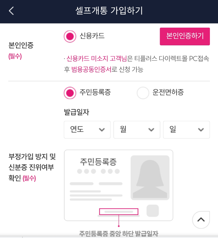 이어서 가입자 인적사항, 주민등록번호를 입력하고 신용카드로 본인인증을 진행해야 합니다. 신용카드 번호와 유효기간을 입력하는 방식도 가능하고, 핸드폰에 설치된 신용카드 앱카드와 연결해서 인증할 수도 있습니다. 신용카드 인증 후에는 주민등록증이나 운전면허증에 있는 정보를 입력합니다. 사용하고 있는 이메일 정보도 입력하고, 이메일로 곧바로 수신되는 인증번호도 입력해야 합니다. 이 부분이 입력하고 확인할 내용들이 좀 많아 어렵게 느껴질 수도 있겠습니다.