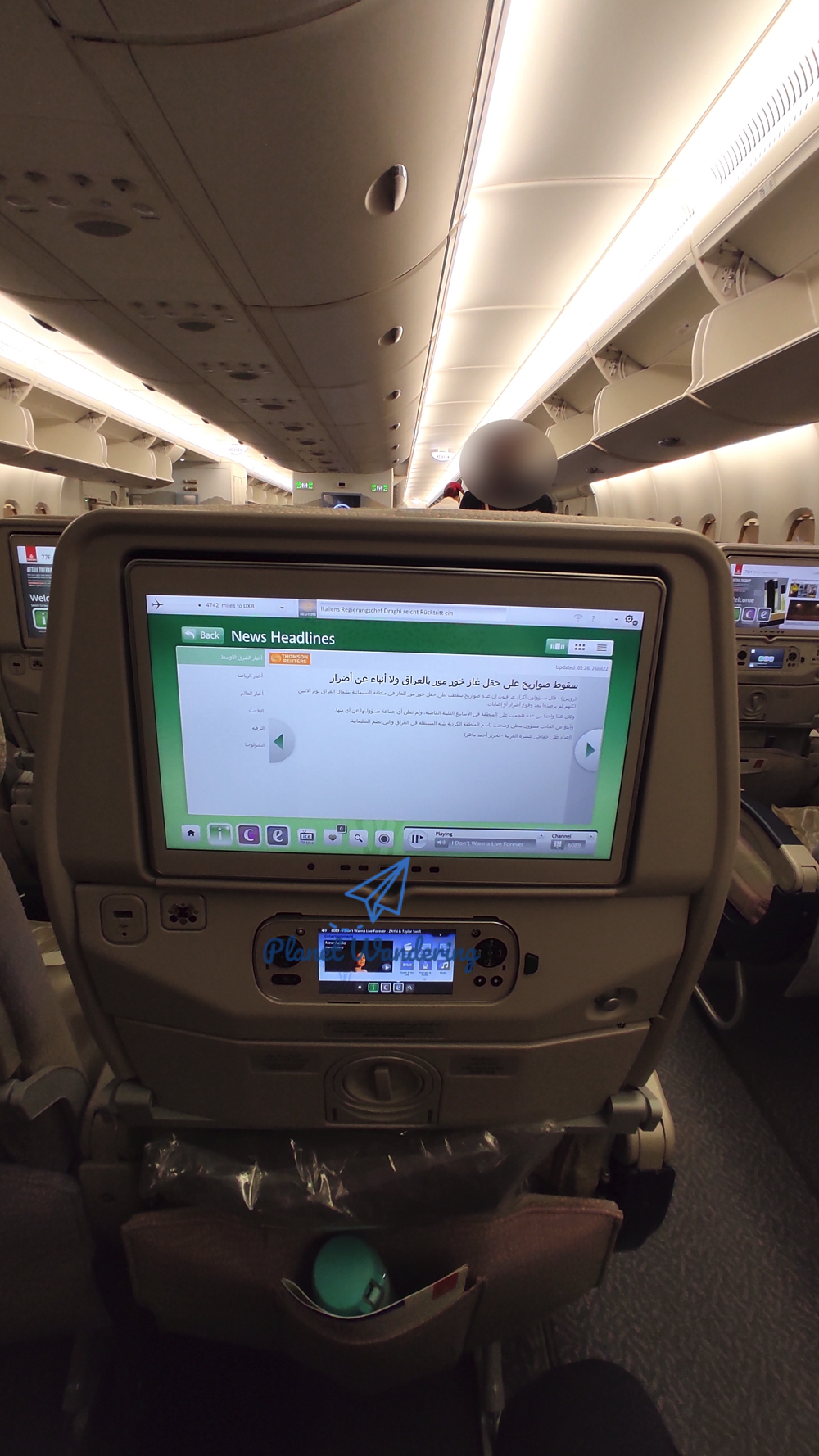 현존하는 가장 큰 여객기라 할 수 있는 에어버스 380의 최대 고객인 에미레이트항공은 123대의 A380을 구입했고, 이 중 몇 대가 우리나라와 두바이를 오가고 있습니다. 같은 기종이라도 좌석 배치와 개인 모니터 등의 옵션이 조금씩 다릅니다. 이 날 탄 비행기는 고유번호가 A6-EUC인데 모니터가 비교적 큰 게 달려있네요.
