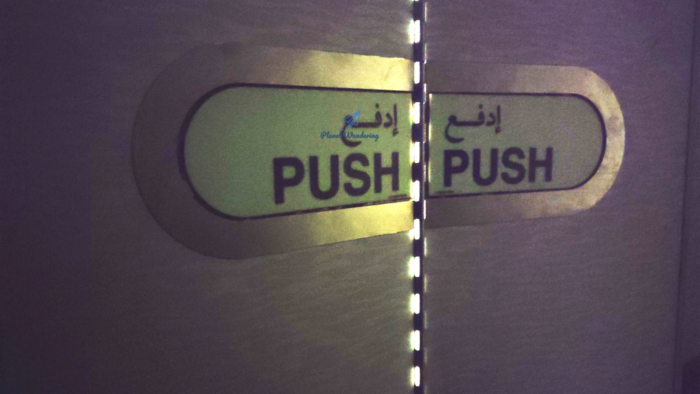 비행기 화장실을 처음 사용하게 되면 화장실 문 여는 방법에서 스트레스를 받게 되는데, 전 세계 여행객이 다 마찬가지인 것 같습니다. 화장실 문 여는 방법에 대한 궁금증과 설명이 인터넷 상에 참 많이 있죠. 비행기 화장실 문을 여는 방법은 크게 2가지입니다. 아래 사진의 왼쪽 문은 우리나라 시내버스 앞문과 비슷합니다. 가운데가 접히면서 열리죠. 이 문을 열 때는 PUSH 라고 적혀있는 부분을 꾸욱 눌러주면 문이 반으로 접히면서 열립니다. 그냥 가운데 접히는 부분을 누르면 되죠.