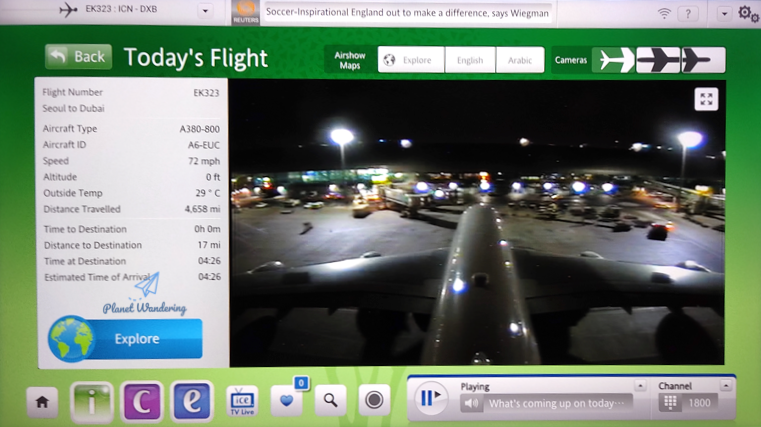 비행기가 고도를 낮추는 게 느껴집니다. 승무원들이 기내 담요와 헤드폰을 모두 걷어가고 쓰레기도 커다란 봉투에 모아 담습니다. 기내 담요와 헤드폰은 반납을 하고, 베개는 반납을 하지 않죠. 잠시 후 비행기가 두바이 공항에 착륙을 합니다. 하지만 공항이 워낙 크기 때문에 게이트까지는 한참을 기다려야 합니다. 기내방송과 모니터에는 비행기가 도착할 게이트가 안내되고, 세계적인 환승 공항인 만큼 탑승시간이 임박한 다음 비행편의 게이트들이 안내됩니다.