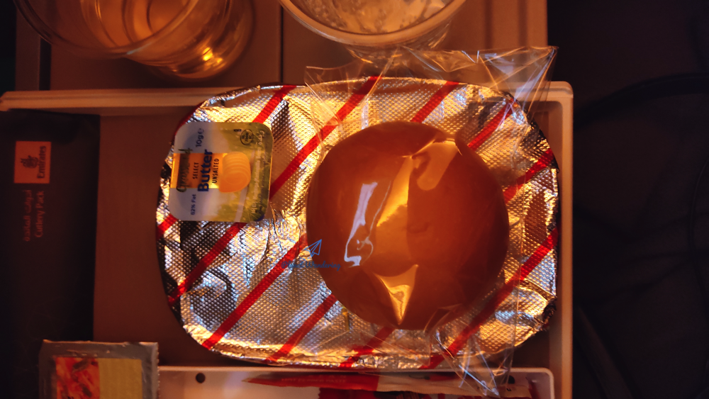 기내에서 먹는 나름의 풀 코스 정찬인데요, 뭐부터 먹는 게 테이블 매너에 맞는지 잘 모르겠습니다. 서양 손님들을 봐도 어떤 분들은 빵부터, 어떤 분들은 메인 메뉴부터, 또 다른 분들은 샐러드부터 드시더군요. 방랑객은 늘 빵부터 먹는데 뜨거운 메인 메뉴 위에 잠시 빵과 버터를 올려놓습니다. 이렇게 하면 빵이 살짝 따뜻해지고 버터도 살짝 녹아 빵에 바르기 쉽죠.