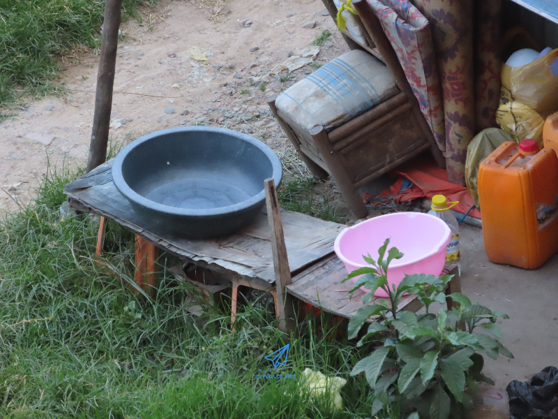 그릇 씻는 장면은 사진을 찍지 못했는데 대충 이렇습니다. 손님이 먹고 난 그릇을 회색 대야에 넣고 설거지를 합니다. 그러고 나서 분홍색 대야에 담긴 맑은 물에 한번 더 헹구면 끝.