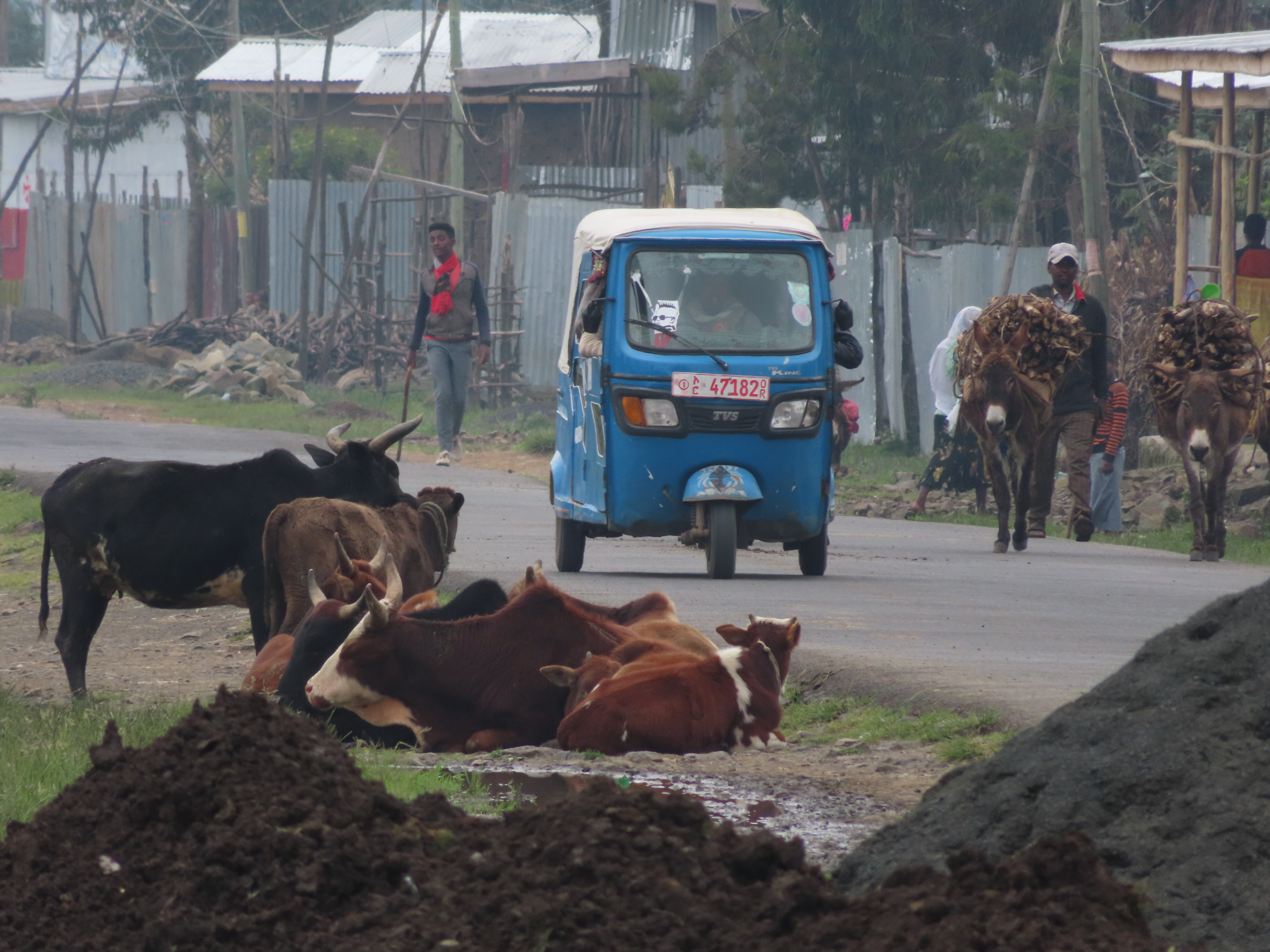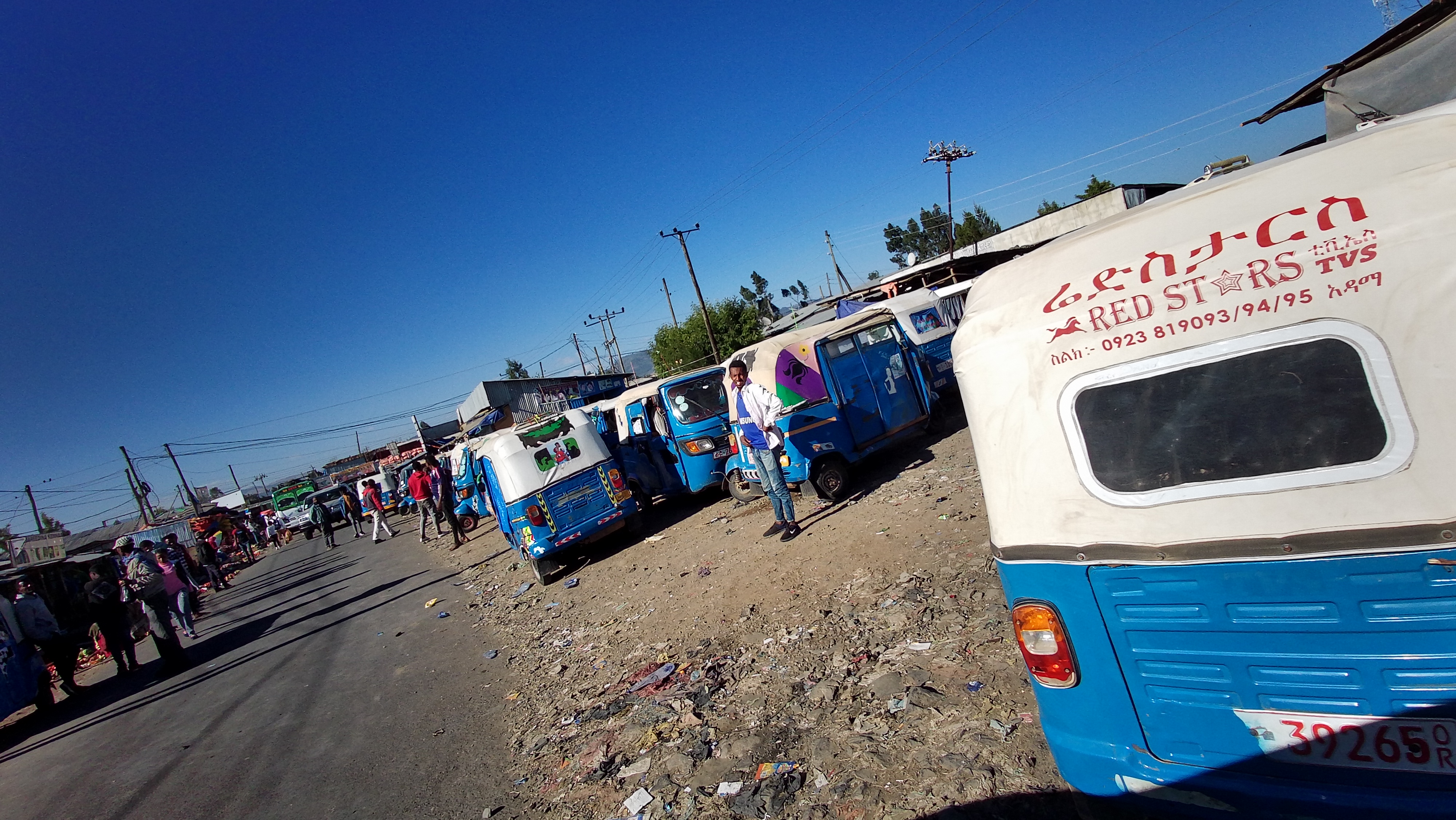 태국이나 필리핀에서 볼 수 있는 툭툭, 트라이시클과 같다고 보면 될 것 같네요. 하지만 오토바이를 개조했다기 보다는 오토바이 부품으로 나름의 3륜차를 만든 게 아닌가 싶습니다. 아디스 아바바 외곽에서 우리나라 자동차 대리점처럼 바자즈 신차를 전시해놓고 판매하는 매장도 있으니까요.