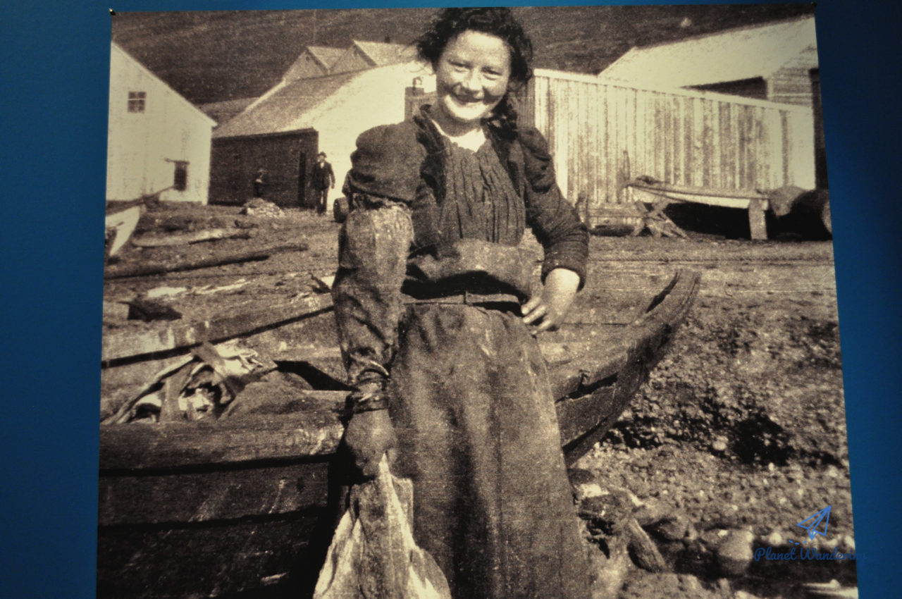 사진 속 여인의 옷차림과 손에 든 대구, 뒤로 보이는 보트를 통해 당시의 삶과 대구를 잡고 가공하는 작업이 얼마나 고된 일이었는지를 짐작할 수 있습니다.
