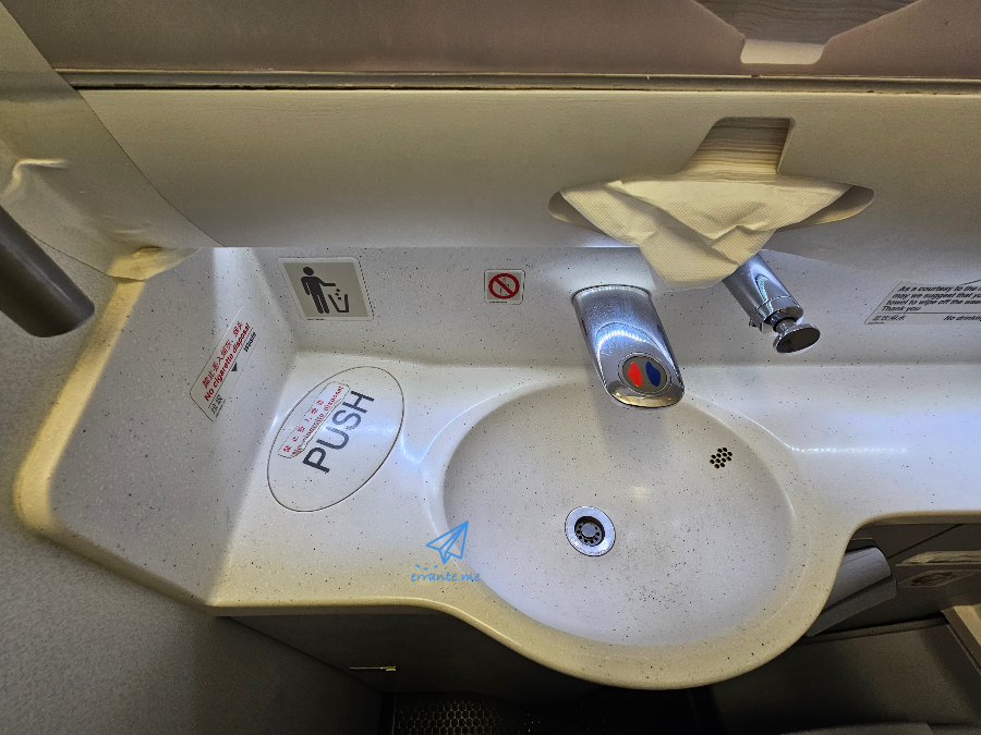 화장실은 좀 문제가 있었습니다. 화장실 시설은 깨끗했지만 에미레이트항공처럼 고급스러운 느낌은 없었습니다. 문제는 비행 중이었는데 어찌나 승객들이 화장실을 지저분하게 사용했는지 몇 시간 후 화장실에 들어가니 물인지 **인지 알 수 없는 액체들이 화장실 비닥에서 비행기 흔들림에 따라 파도치듯 출렁이고 있었죠.