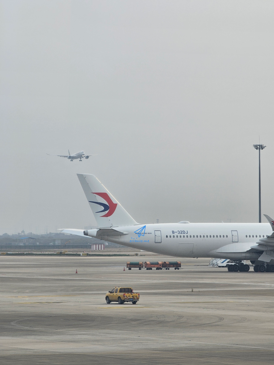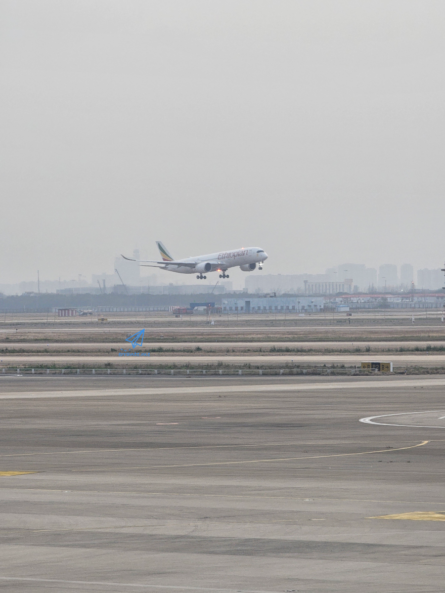 이륙 준비를 하는 동안 착륙하는 비행기들이 많이 보였습니다. 막 내리는 비행기는 에티오피아항공의 비행기입니다. 몇 년 전, 에티오피아를 자주 다닐 때 중국인 승객들이 대규모로 인천공항에서 환승해 에티오피항공을 타는 걸 보고는 중국으로는 노선이 없는 줄 알았는데 상하이로 오는 노선도 있었군요.