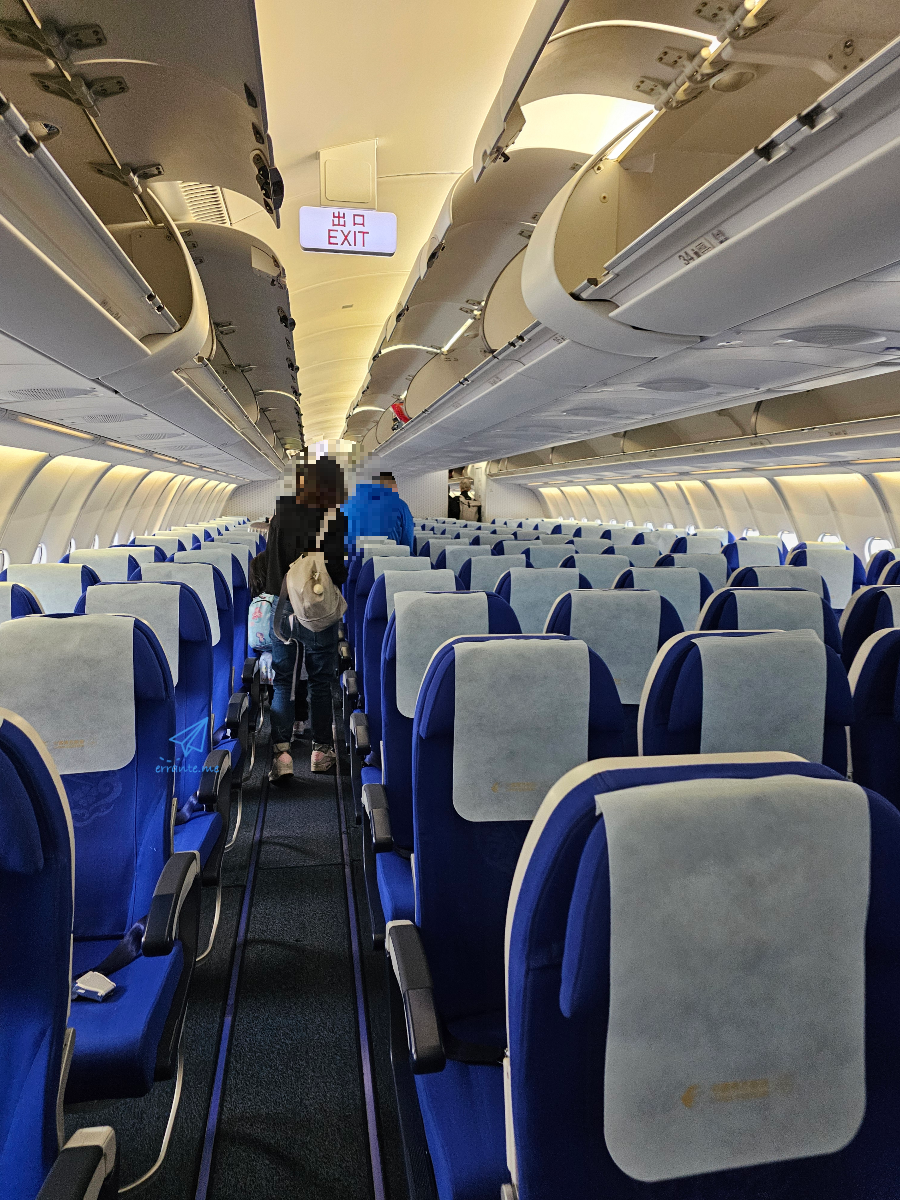 다른 나라 비행기를 타면 기내 인테리어나 승무원 유니폼에서 그 나라의 문화를 단편적으로 엿볼 수 있죠. 대한항공에서 연상되는 파스텔 톤 시트에 비해 원색적인 파란색이 특이하게 느껴집니다. 시트 등받이에는 중국풍 문양도 새겨져 있네요.