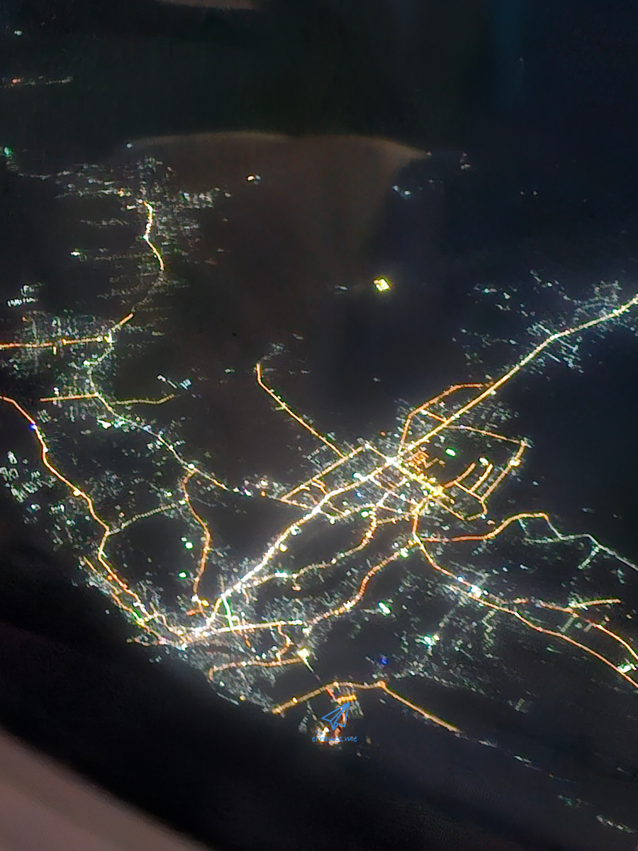 초승달이 예쁘게 떴길래 비행기 날개에 걸쳐 찍어봤습니다. GPS를 확인해보니 중국 광둥성, 남중국해, 베트남, 말레이시아를 지나 싱가포르로 가는 경로였습니다.
