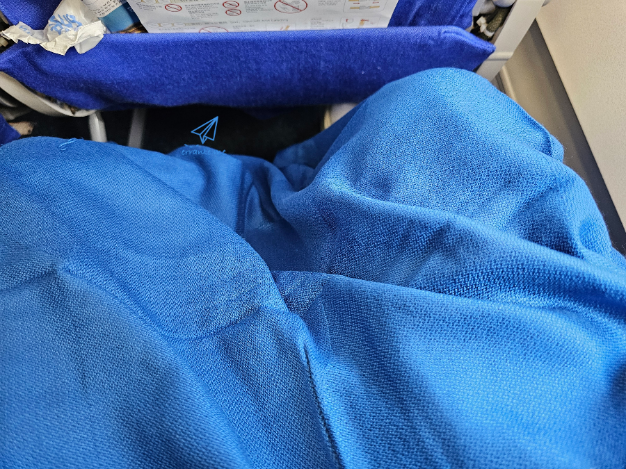 비행시간이 아주 길지는 않기 때문에 좌석마다 담요가 비치되어 있지는 않습니다. 이륙 준비를 할 때 승무원에게 부탁을 하는 게 좋습니다. 승무원이 담요를 한 아름 들고 다닐 때는 서로 가져가려고 해서 물량이 부족할 수도 있으니까요. 담요는 깨끗하고 따뜻해서 좋았습니다.