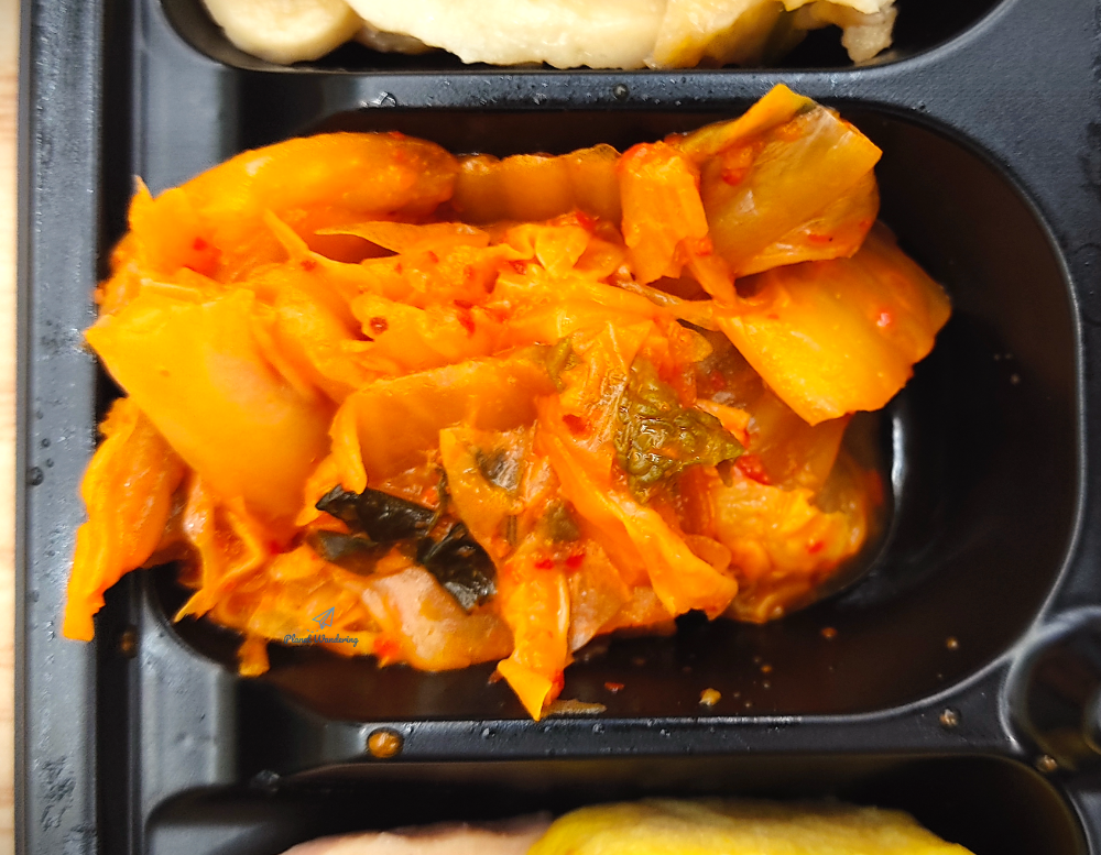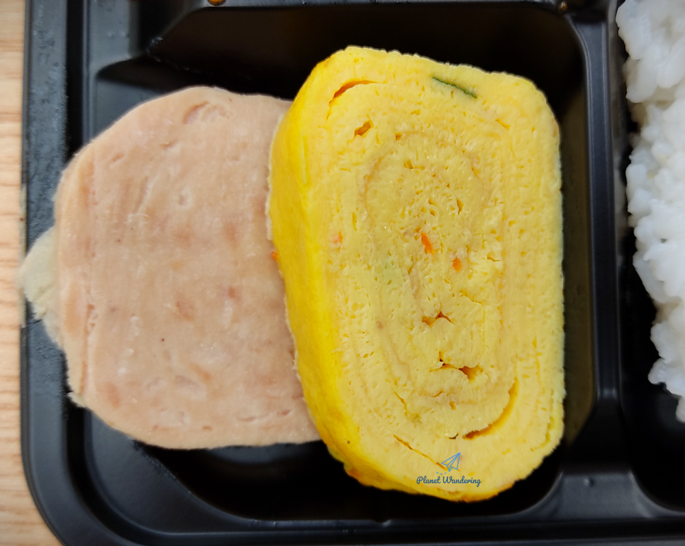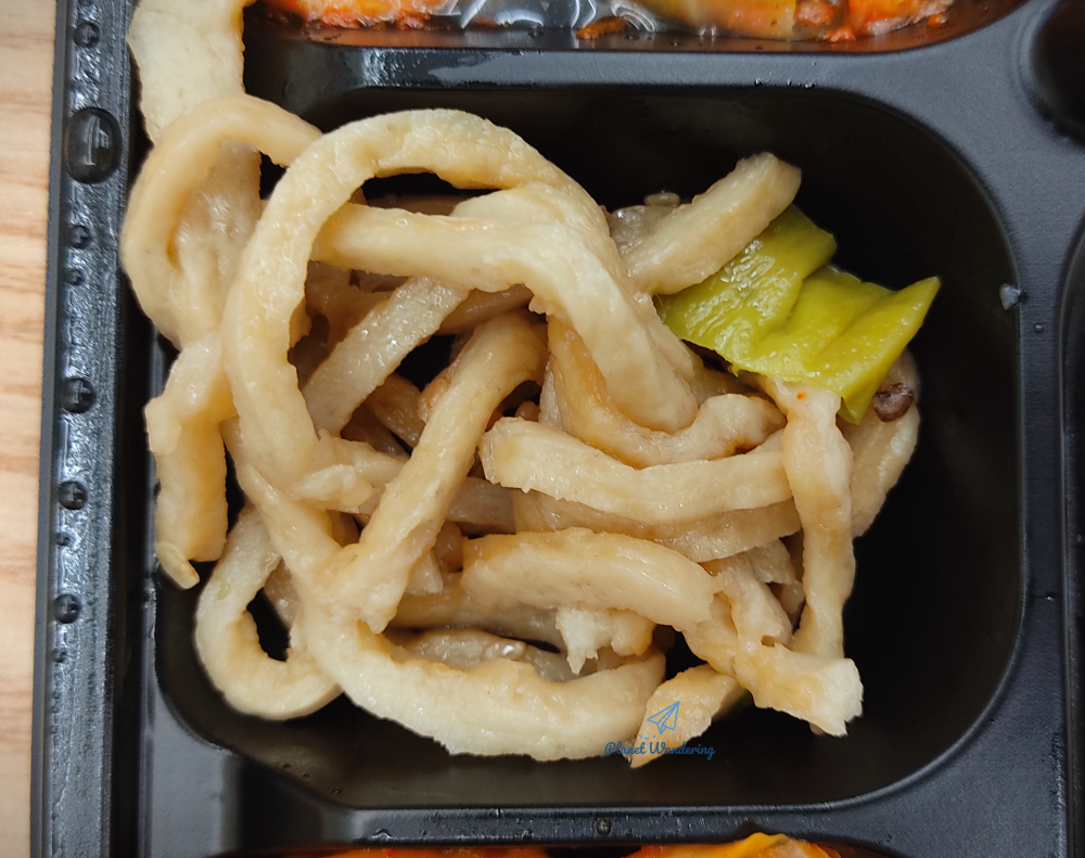 다른 반찬들은 평이하고 무난한 구성입니다. 잘게 채썬 어묵 볶음이 있고, 매운맛을 살짝 누른 볶음 김치, 그리고 달걀말이 한쪽과 스팸 한쪽이 들어있습니다. 스팸은 굽지 않은 통조림 스팸을 그대로 잘라 넣은 것 같은데 맛은 흠잡을 데가 없습니다.