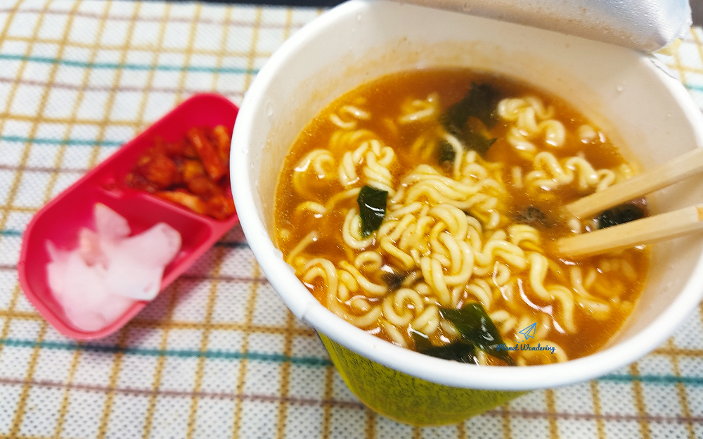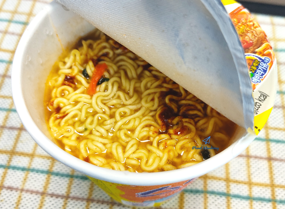 그래서~ 사무실 책상 속에 숨겨두었던 컵라면을 하나 꺼내 부족한 포만감을 채웠습니다. 더 이상 살찌지 않으려고 도시락 먹을 때 라면을 같이 먹지 않으려 하는데, 대파목살구이 도시락은 양이 조금 부족해서 뒤늦게 라면을 먹게 되었네요. 사무실에서 먹는 도시락은 음식물 쓰레기를 최최 최소화해야 하니, 도시락에 남은 무초절임과 무말랭이를 반찬삼아 라면을 먹어치웠습니다~