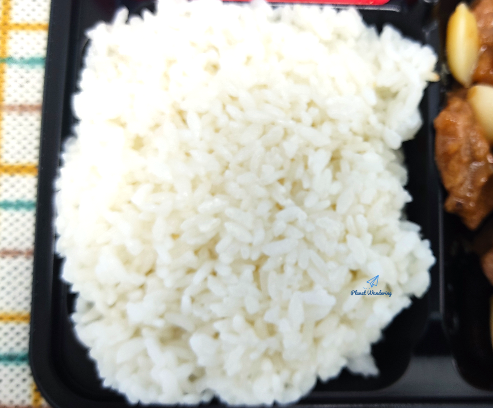 수입산 돼지고기 목심을 먹기 좋은 크기로 썰어, 간장에 달콤한 소스를 섞어 함께 볶아만든 돼지목살구이입니다. 보통 혼합육이 대부분인 편의점 도시락들과 달리, 진짜 고기가 그대로 들어있어 훨씬 맛도 좋고 안심도 되네요. 큼지막한 익은 마늘도 여럿 들어있어 도시락 용기가 아닌 불판이라면 유명한 돼지고기 맛집에서 먹는 기분이 들 것도 같습니다.