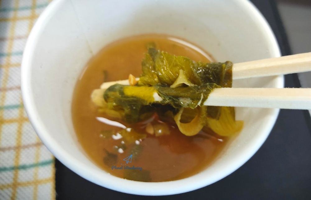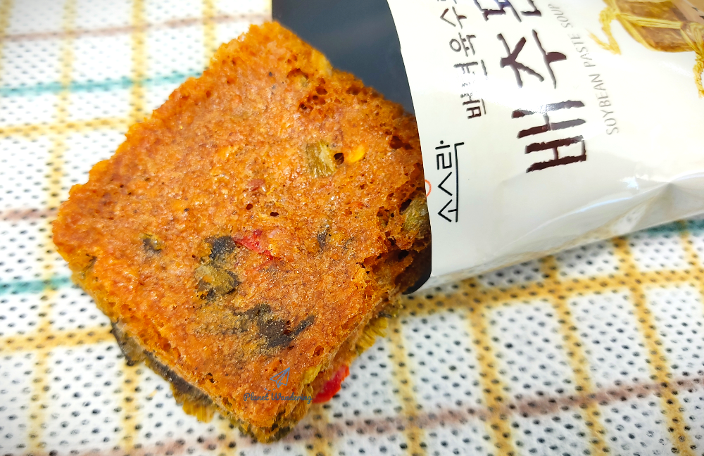 블럭에 뜨거운 물을 붓고 조금 지난 후 살살 저어주면 건더기도 풍부한 배추된장국이 만들어집니다. 인공적인 맛도 없고, 배추 건더기도 신선하게 느껴지는 따끈한 국물 맛이 일품입니다.