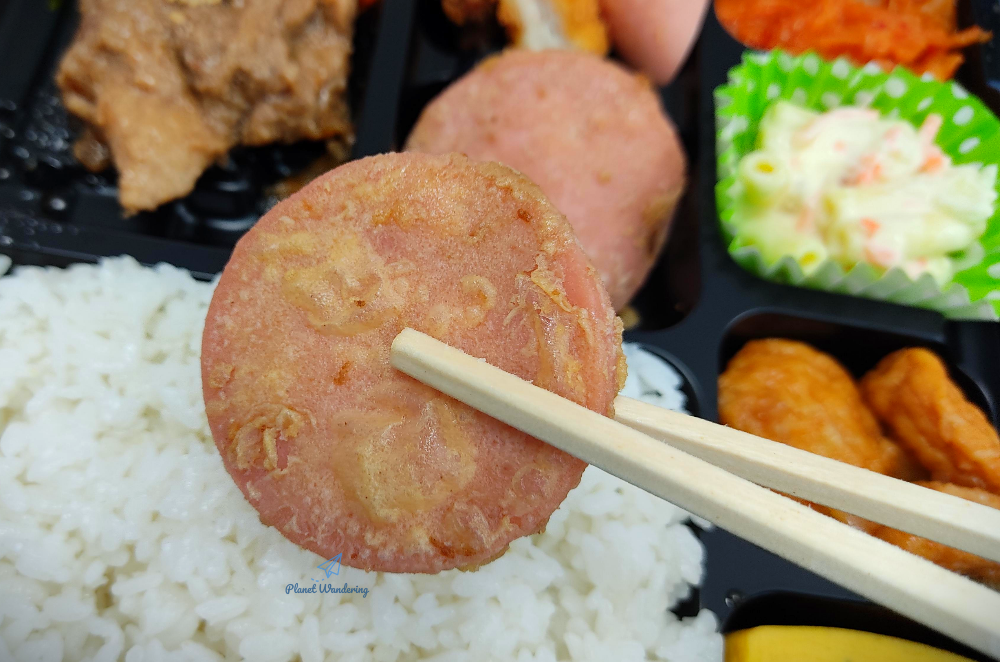 조각 돈까스 속이 좀 푸석푸석하고 공갈빵처럼 공기가 많이 들어간 느낌이었고, 반쪽만 들어있는 비엔나 소시지는 생소시지를 그대로 넣은 것 같았지만 맛은 괜찮았습니다. 살짝 구워낸 동그랑땡 소시지는 맛도 좋은데 제법 크기도 컸습니다. 토마토 케첩이 들어 있었으면 더 맛있게 먹었을 텐데 케첩이 좀 아쉬웠네요. 조그맣게 들어 있는 꼬마 너비아니 불고기도 달콤한 맛이 마음에 듭니다. 요 녀석은 2개 정도 들어있으면 더 좋았을 것 같네요.