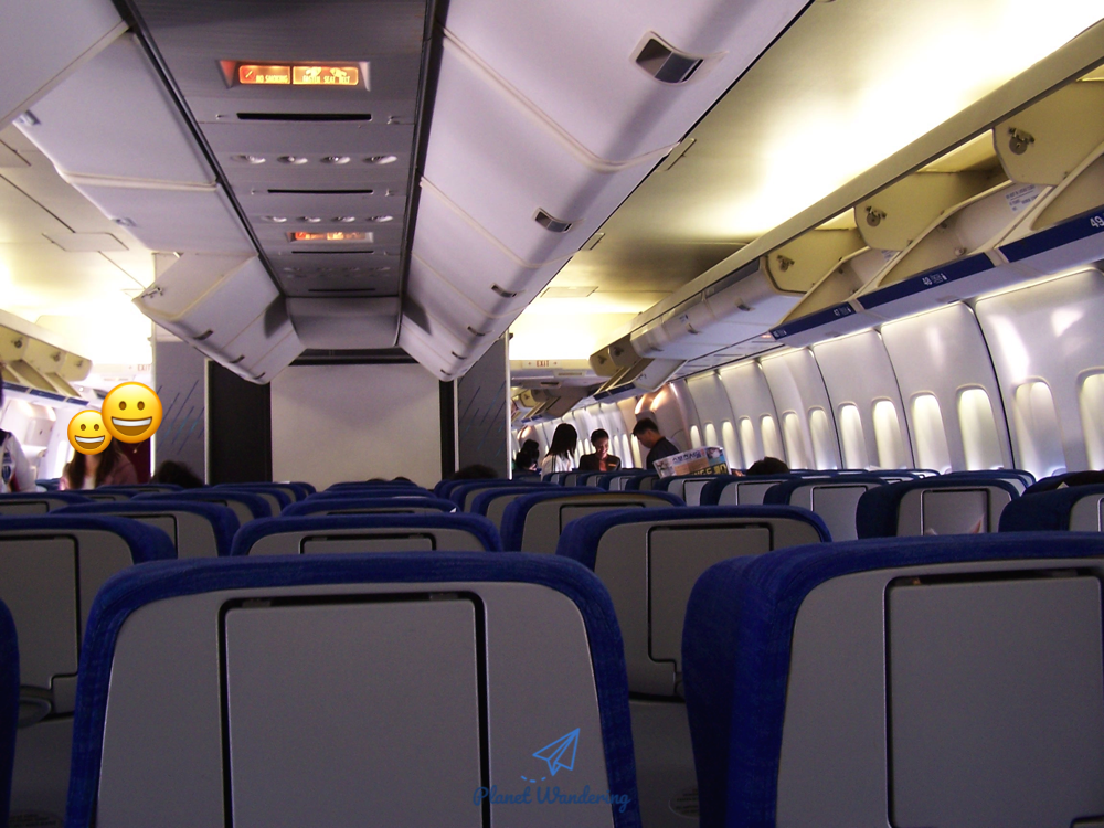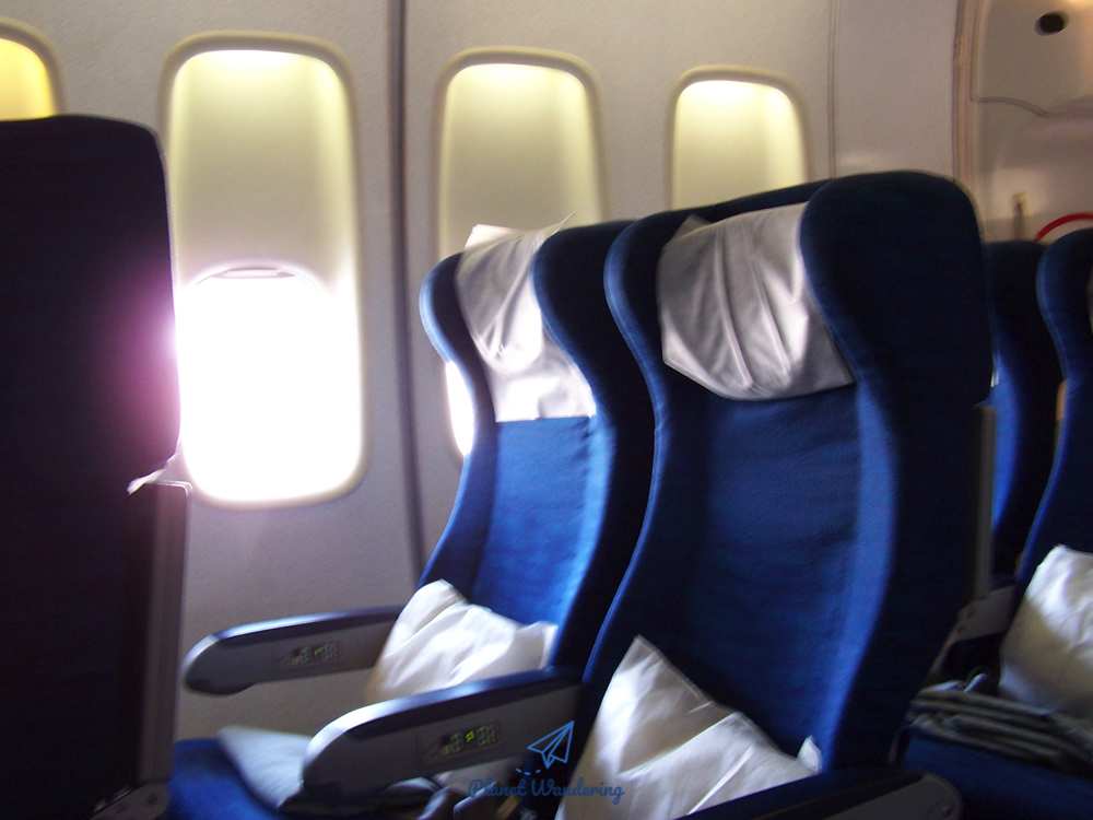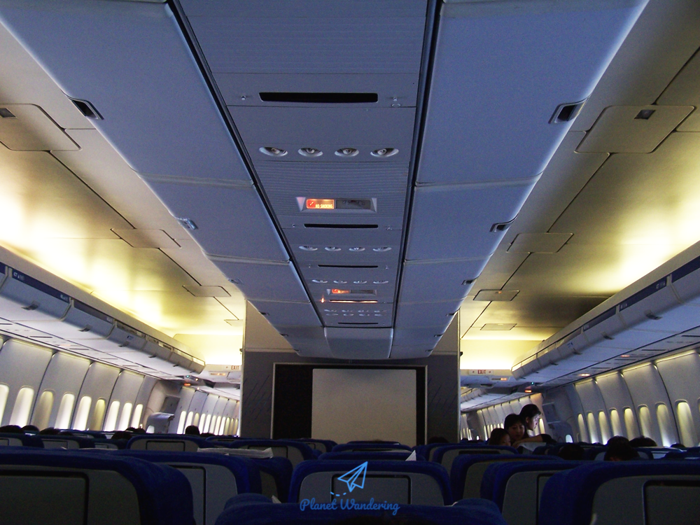 2004년 당시 생각하기에도 푸켓에어의 보잉 747은 매우 낡은 비행기였습니다. 747의 초기 모델인 747-200 기종입니다. 안전벨트 표시등이나 머리 위 선반의 모양만 봐도 오래된 비행기라는 걸 알 수 있죠. 비행기 천장도 평평합니다. 새 비행기에 가까울수록 비행기 객실 천장의 디자인은 곡선이 많다고 할 수 있죠.