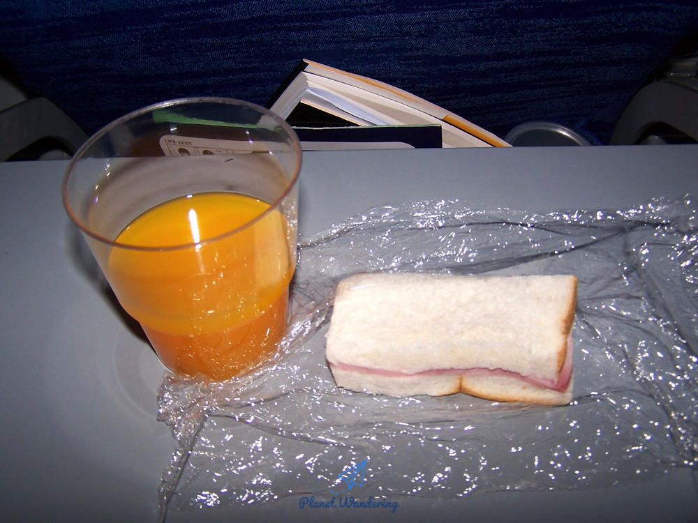또 놀라운 것 한가지 더, 내릴 때가 가까워지자 간단한 샌드위치와 음료를 또 줍니다. 요즘도 태국 정도 가는 6시간 거리면 기내식 1, 스낵 1을 제공해주는지 잘 모르겠네요.