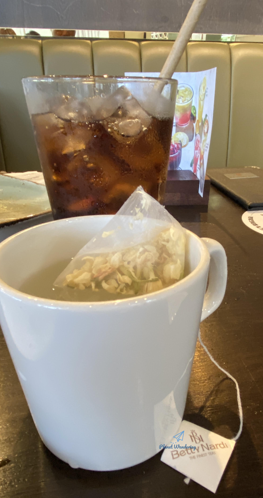 디저트 바나나 스프링 롤과 함께 커피 또는 차를 드실 수 있습니다. 커피는 따뜻한 커피 혹은 아이스 커피를 고르실 수 있는데, 커피보다는 차를 드셔보시는 것도 좋을 것 같네요. 베티 나르디 브랜드의 차가 나오는데 티백도 고급스럽고 맛과 향도 풍성한 게 피에프창에서의 좋은 시간을 마무리하는데 제격입니다.