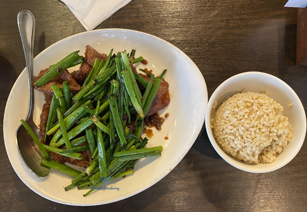 겉이 바삭할 정도로 잘 익힌 소고기 슬라이스를 피에프창의 특제 소스로 볶아낸, 피에프창의 대표 인기 요리라고 하네요. 소고기는 제법 크고 두툼하게 장만되어 나옵니다. 우리 음식으로 비유하자면 불고기 소스 같은 고기요리 소스를 붓고 굽듯이 끓여낸 맛이라 하겠네요. 함께 나오는 근육질 느낌의 부추와 함께 드시면 부추 향과 소스 향이 잘 어우러져, 몽골리안 비프 역시 다른 음식점에서는 맛보지 못한 독특한 맛을 냅니다. 현미밥일까요? 함께 나오는 밥을 곁들여 드시면 더욱 맛이 좋습니다.